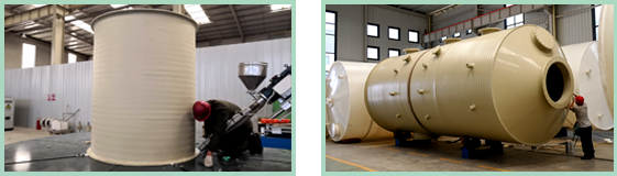 分為PPH錐形熔融擠出盤圈技術應用處理做成而成的全塑構造的耐生銹塔器或過熱蒸汽罐體;加入了木板二級機頭的舊加工。